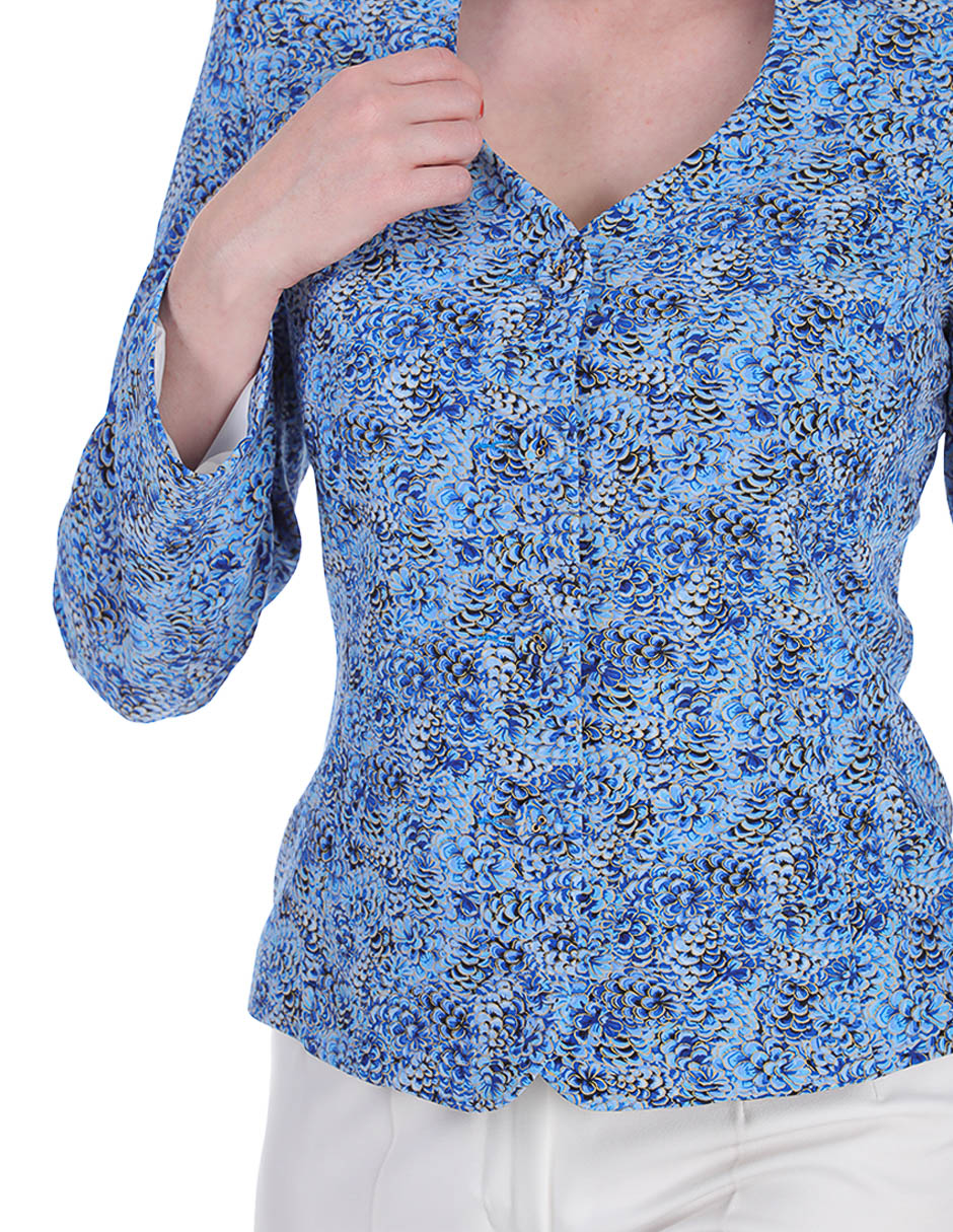 Blazer azul claro con estampado floral del mismo color: para la líder que representa frescura y versatilidad.