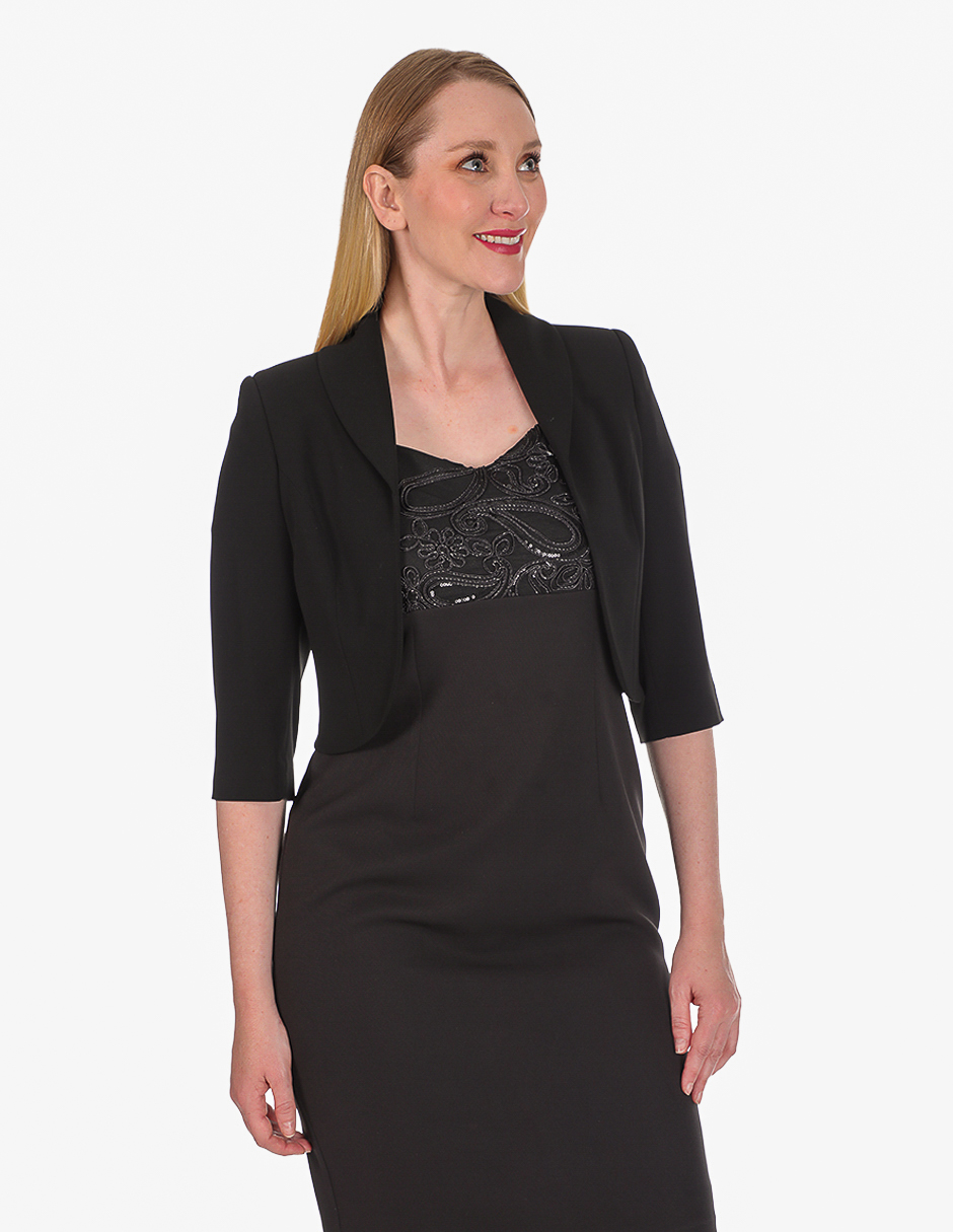 Conjunto Vestido Negro Blazer Mangas 3/4