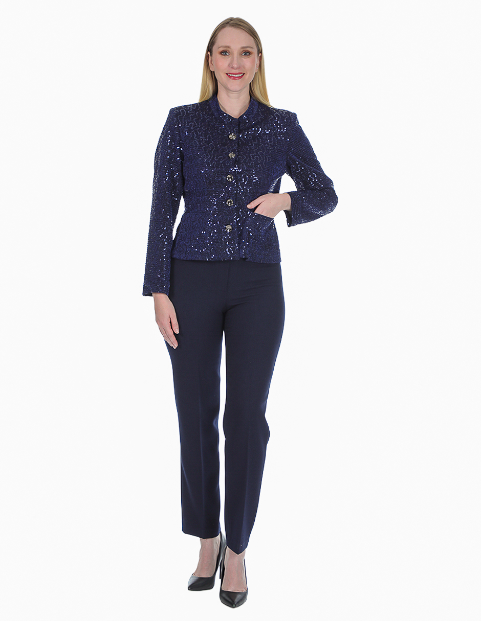 Conjunto Ejecutivo Blazer Lentejuelas Azul Marino + Pantalón