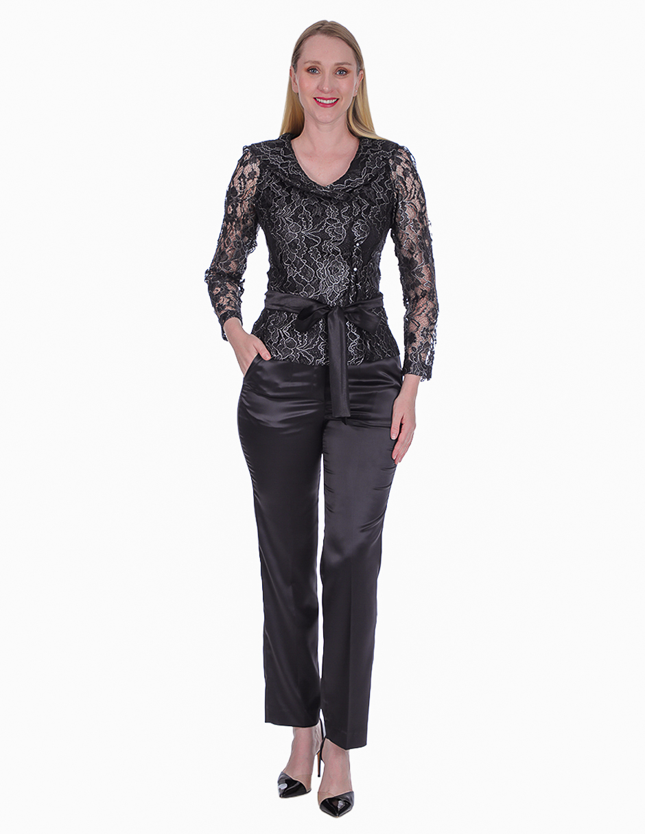 Conjunto Blusa Encaje Negro + Pantalón Satinado
